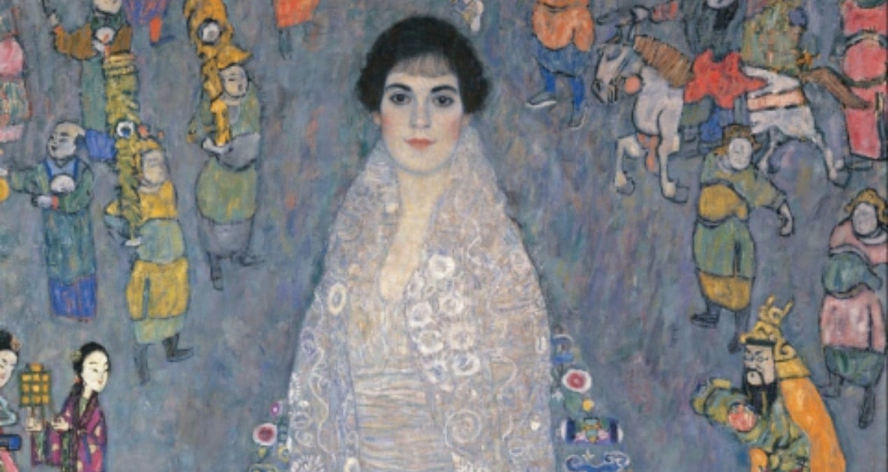 Eser önce Asya’dan ilham alınan motiflerle bezenmiş bir arka planın önünde duran genç kadını gösteriyor. Portrenin ortasında ise Nazi döneminden önce Viyana’nın en varlık ailelerinden birinin kızı yer alıyor.